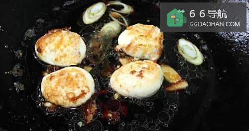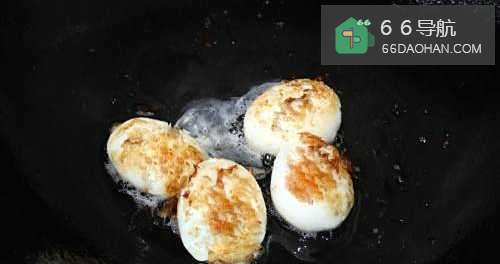 4锅中放油,放入鸡蛋煎至两面金黄,表面起皱,然后盛出。