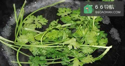 9将香菜直接放到米饭上,然后倒入适量蚝油调味(虎皮鸡蛋比较香,所以配的菜最好不要用油炒,焯水拌一下就可以了)。