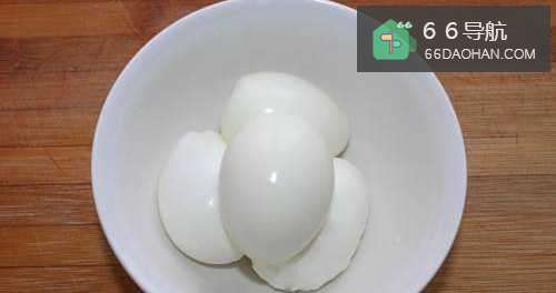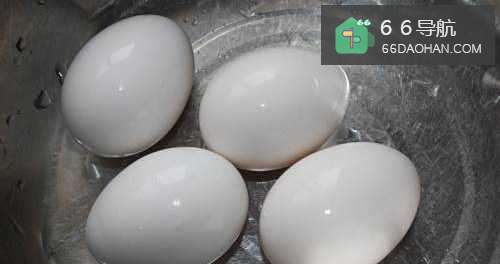 3鸡蛋煮熟后,剥掉蛋壳备用。
