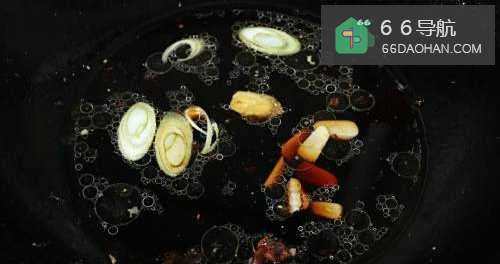 5锅中放入水、老抽、料酒、盐、糖、八角、葱、姜、蒜。
