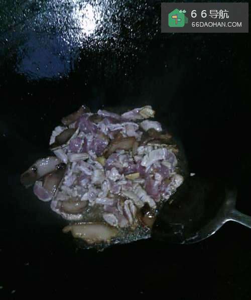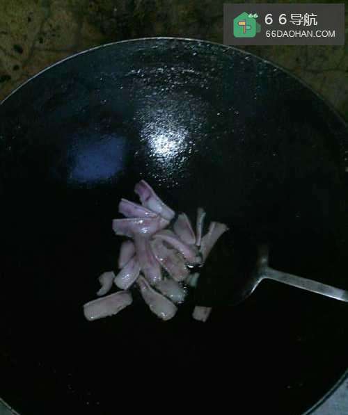 4清洗炒锅,放入肥猪肉,武火煎炸出油性,使之略为发黄,油腻去除为止。