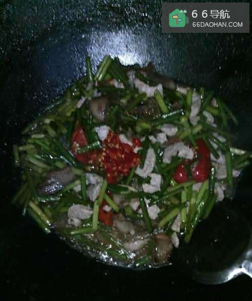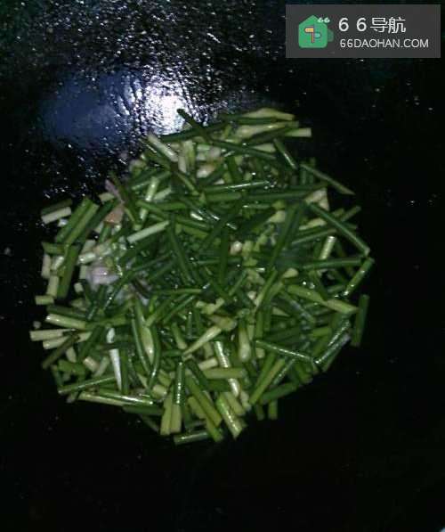 6放猪油煮滚,加入切好的蒜苗,加适量食盐。