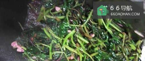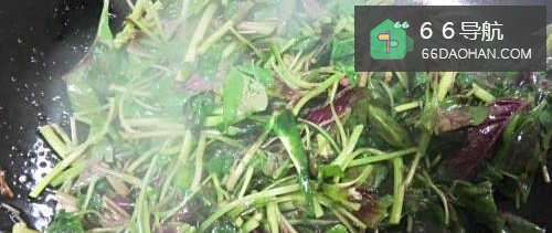 5一同翻炒几下,至茎、叶变色,即可准备出锅。