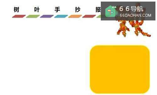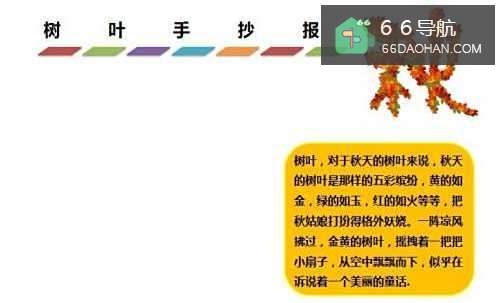 4在【树叶手抄报】标题的下方右侧处,在框内写上字,如下图所示。