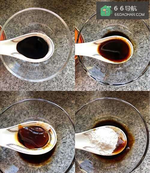 2碗中放一勺生抽,一小勺老抽,一勺蚝油,一勺淀粉搅拌均匀调好酱汁。