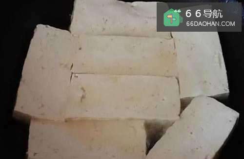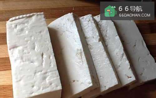 33、豆腐切约0.81cm厚的块状。