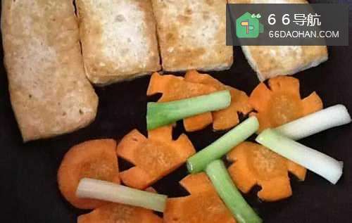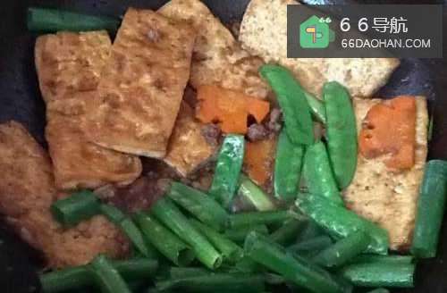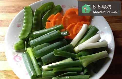 66、再放入葱白与红萝卜,拌炒出葱香。