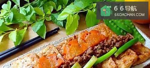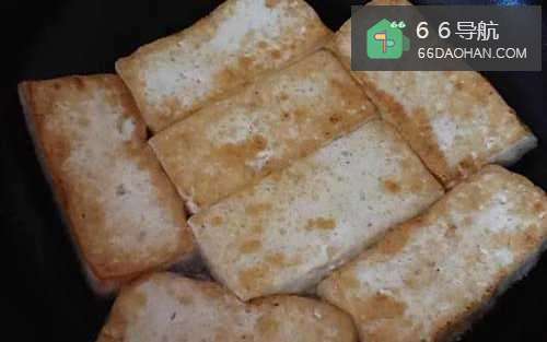55、将豆腐两面煎至金黄。