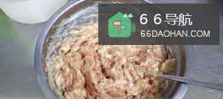 4加少许盐,顺着一个方向搅拌;想要肉丸口感嫩,一定要往肉馅里打水;肉的含水量不一样,所以要少量多次的加凉水,搅拌至肉馅能呈现明显的带拉丝状的漩涡就可以了,静置一会儿再使用,使水完全吃进去,肉丸入水就坚挺不趴了;