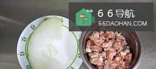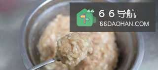 7取一个小勺,蘸点儿水,挖一勺肉馅,在碗里摔打几下,肉丸表面就很光滑了;