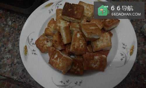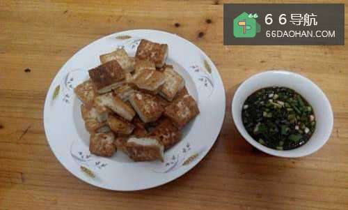 煎豆干,也是家乡的一款地道小吃,将豆腐两面煎黄,搭配上生抽、葱花,蘸着一起吃,味道特别,每回吃到时候,总有一种回到儿时的感觉。