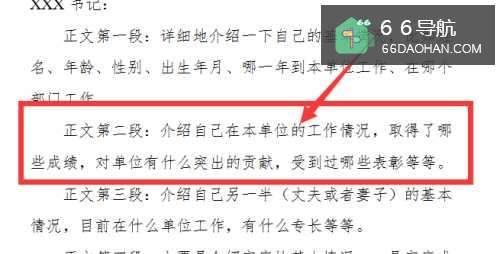 4正文第二段介绍自己在本单位的工作情况,取得了哪些成绩,对单位有什么突出的贡献,受到过哪些表彰等等。