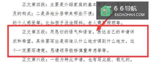 7正文第五段用恳切的语气和语言,表达自己的申请诉求和希望。