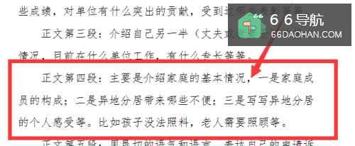 6正文第四段主要是介绍家庭的基本情况,一是家庭成员的构成;二是异地分居带来哪些不便;三是写写异地分居的个人感受等。