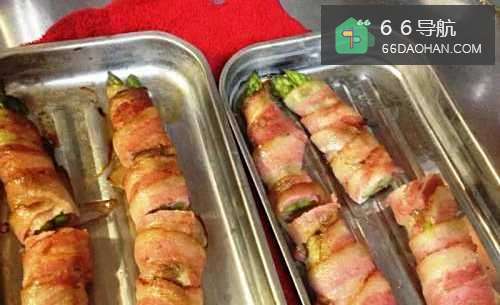 4烤好的芦笋卷,用剪刀直接在烤盘上剪断