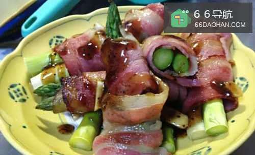 咸香的培根搭配脆甜的芦笋,加入带点酸甜的黑胡椒酱汁,很美味。