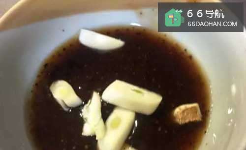 5黑胡椒酱、乌醋、糖搅拌均匀,撒上切片的大蒜,搅拌均匀,调成酱汁