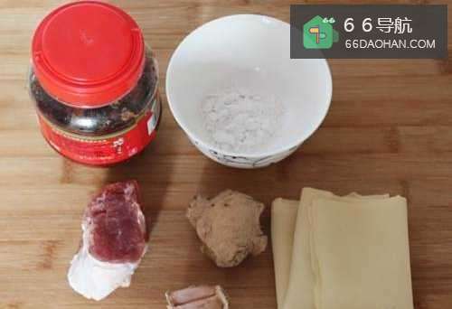 准备好豆腐连丝的材料猪肉100g、豆皮1张、姜蒜淀粉适量、豆瓣酱。