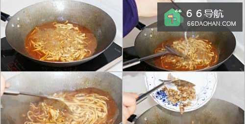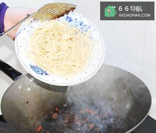 7 加入适量水等到快出锅的时候倒入淀粉水,烧开至汤汁粘稠,再倒入抄好的肉末。