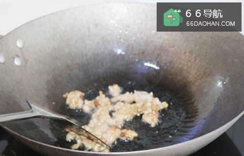4 锅里放适量菜籽油,把肉末爆炒炒熟,盛出待用。
