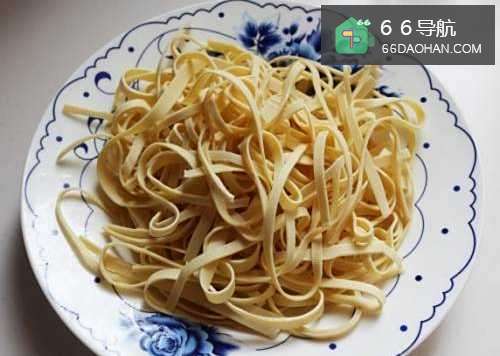 2 把豆皮洗干净,切成15cm左右长度的细丝。