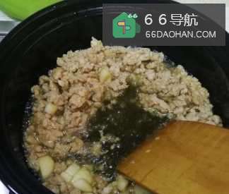 将切好的生姜、蒜末放入砂锅炒香,再放入肉沫进行翻炒变色