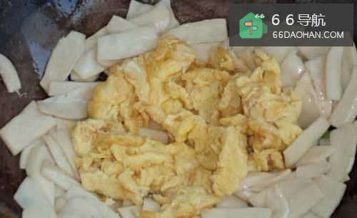 4炒锅放油加热,鸡蛋入锅炒熟后盛出