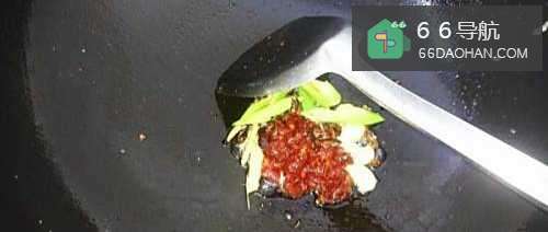 4锅中留少许底油,依次放入花椒,干辣椒,葱姜蒜煸出香味,再倒入1汤匙豆瓣酱炒出红油。