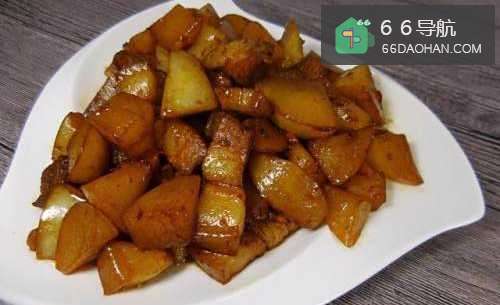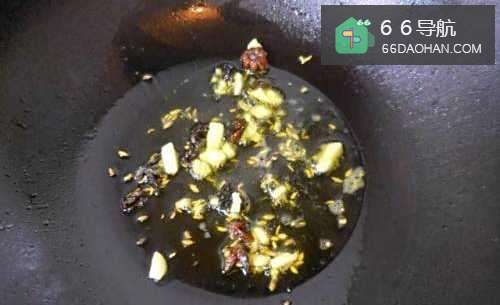 66.入白萝卜翻炒,加入适量清水,盖锅焖至收汁;