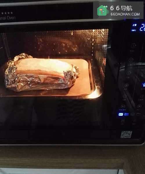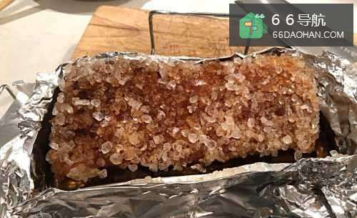 5用锡纸把肉包起来,把猪皮一面露出来,擦干水分后抹上盐。