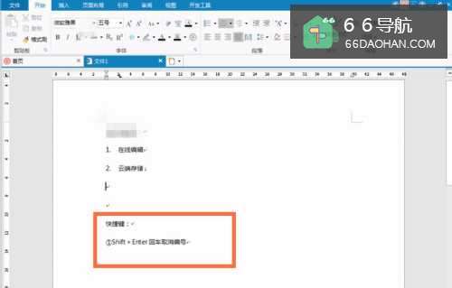 2除了上述两种快捷键之外,还能使用【Shift+Enter】组合键,不带编号直接换行,相比较而言,这种方式更快速一点。