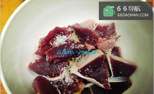 2准备若干新鲜的鸭胗,将其清洗干净,然后切成薄片状。