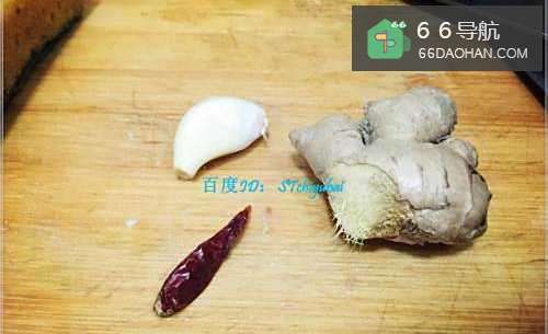 4准备若干辅料生姜、蒜头、辣椒干,分别处理一下。