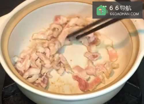 锅中倒入油,将猪肉翻炒片刻,直到颜色变白
