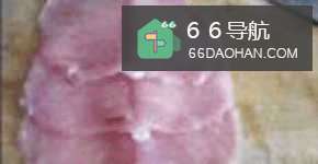 2将解冻好的肉切成连刀,即中间那刀不切断。