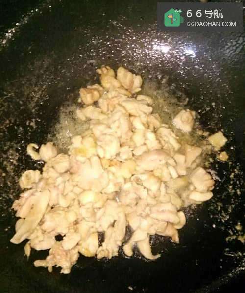 4开火,加入适量的食用油,将鸡肉先下入锅里炒熟再盛出备用;