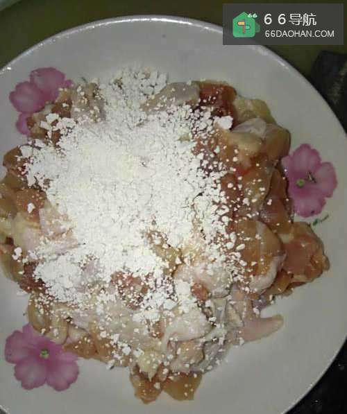 2将鸡肉切成小块,放入盆里,加入适量的淀粉,抓匀,腌制10分钟;