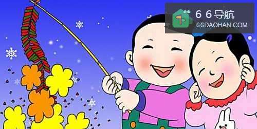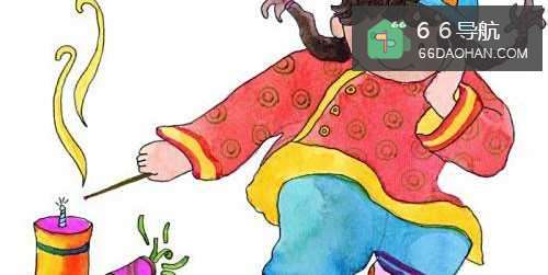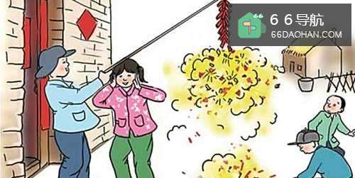 3 孩子们放长鞭炮时,将长鞭炮挂在竹棍上,但这个竹棍不能太长,孩子用手平举着,不能举太高,以免鞭炮的碎末飞到头发上。