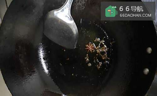 2锅内放适量油,加入花椒和八角爆出香味。