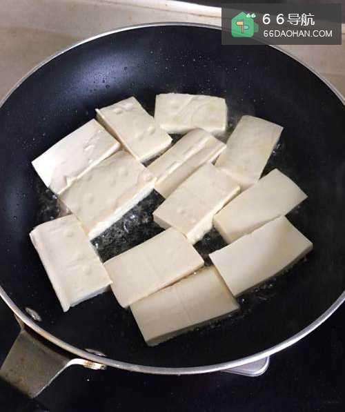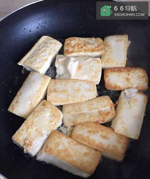 3在豆腐放下后不能着急翻面,待用铲子触碰,感觉底面凝固之后再翻面;