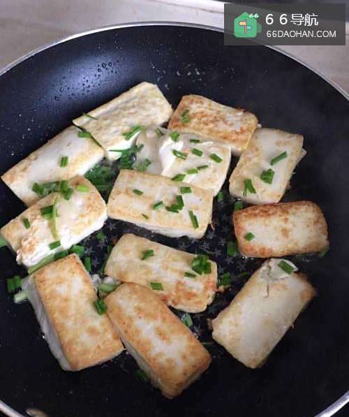 4翻面继续煎至两面都金黄后,加入葱花调味;