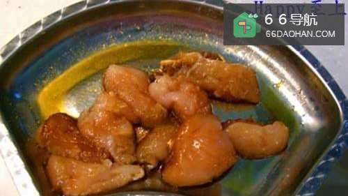 鸡胸肉洗净切块提前用酱油十三香腌制;
