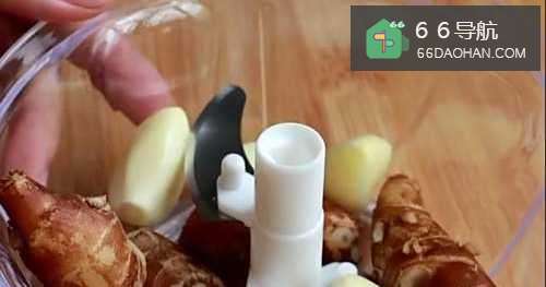 首先我们把买回来的沙姜清洗干净,然后和蒜瓣一同放入搅碎机中打制成碎末。