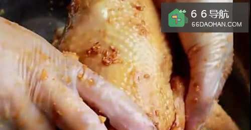 3把新鲜的土鸡适当清洗干净,用吸水纸吸干表皮的水分之后,放入准备好的沙姜调味料中,戴上一次性手套,把调味料抹制在土鸡的外表和内里,放在冰箱冷藏腌制三小时。
