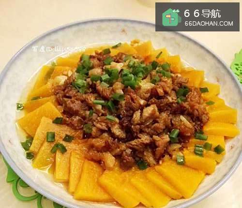 肥瘦相间的肉末配上香味浓郁的大蒜,蒸出来的南瓜,油而不腻、爽口嫩滑、让人回味无穷。