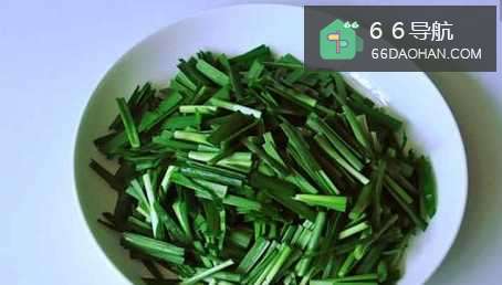 将泡好的韭菜清洗3遍清水,韭菜相对其它蔬菜较难清洗,最好清多几次。
