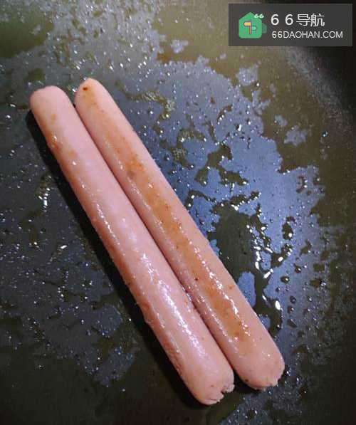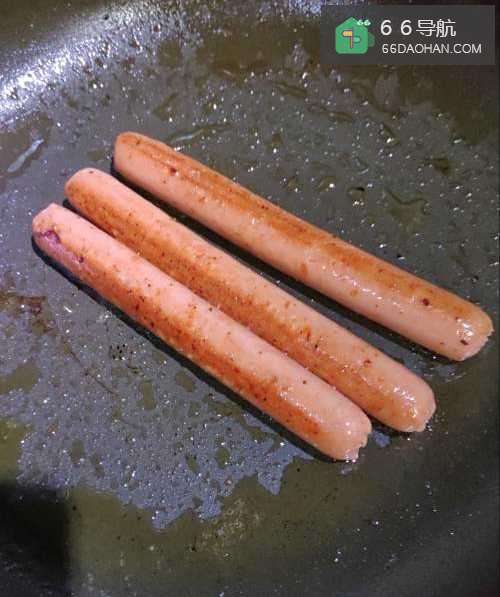 让香肠的外皮都包上一层焦黄,继续换面煎。