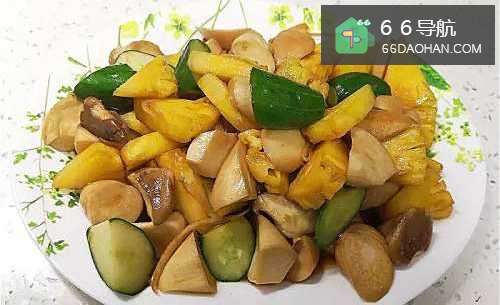 杏鲍菇炒凤梨,一道别具风味的家常菜。