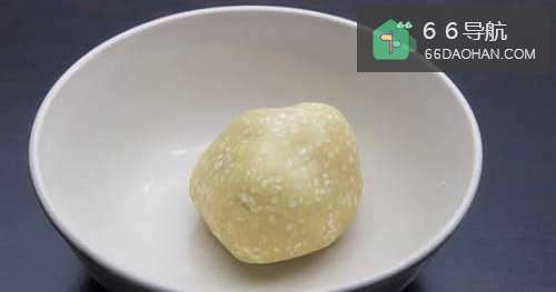 3等待面团发酵制作油酥面团,油酥所有食材混合,揉成芝麻油酥面团。