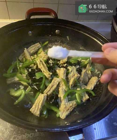 4放入少许盐、味精,翻炒均匀